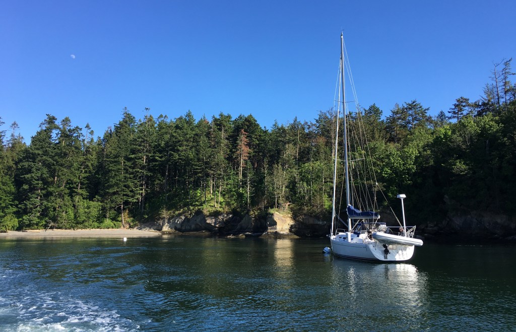 It was a late spring day and under a fragile, egg-shell sky the waters of Bellingham Bay were laid out like crumpled blue silk. My buddy, Art Favinger, piloted his Bayliner boat out beyond Portage and Lummi to tiny Matia Island, a 145-acre marine park on the Strait of Georgia. The island is part of the San Juan National Wildlife Refuge and is simply stunning. We docked at Rolfe Cove which provides 128 feet of overnight moorage.