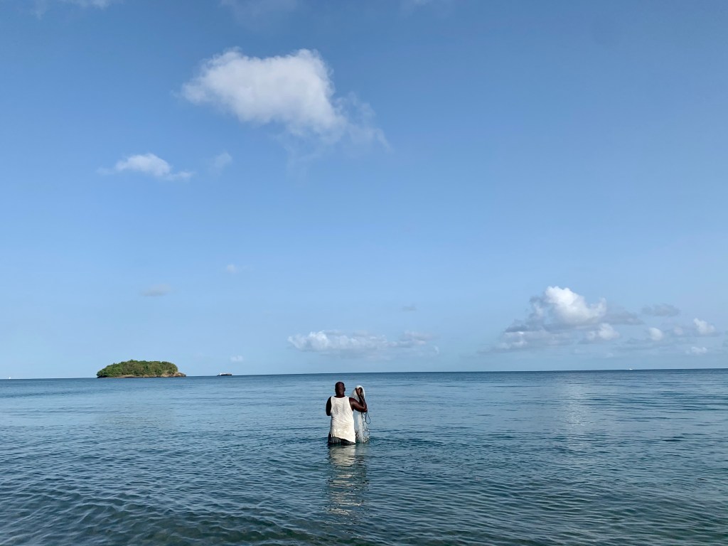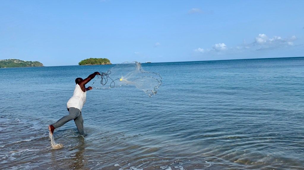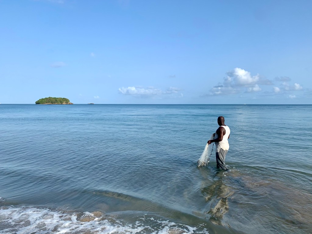 Marcel Philip was a 58 year old fisherman patrolling the shallows of the otherwise deserted Choc Bay, ready to cast his lead-weighted net to catch the sardines that he would then grind into a paste to use as bait for the more lucrative snapper that he subsequently sold to restaurants. Marcel was an absolute delight to walk and talk with, possessing a broad, easy and engaging smile like the sun rising through palm trees, his large face enriched with stubble and dried salt as white as the sand below his bare feet. He regaled me with stories of his life on St Lucia, his stentorian boom of a voice like heavy waves hitting the shore in a tropical storm. He had a career in tourism on the island which had been curtailed by Covid-19 and so he was temporarily reverting to his passion for fishing to make ends meet. With a twinkle in his eye, this thrice married father of seven said “yah maan, interesting life. The women kept comin’ and so did dem babies!”
