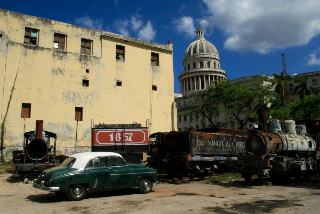 27th February 2009: Rusting old trains are abandoned behind the Capitolio building in Habana, Cuba. Picture by David Pillinger.