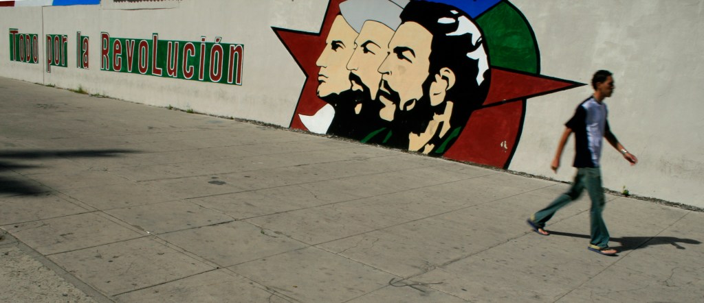28th February 2009: A man walks past a revolution mural in Habana, Cuba. 2009 is the 50th anniversary of the Cuban Revolution. Picture by David Pillinger.