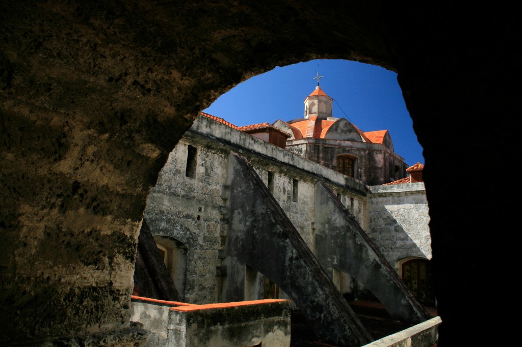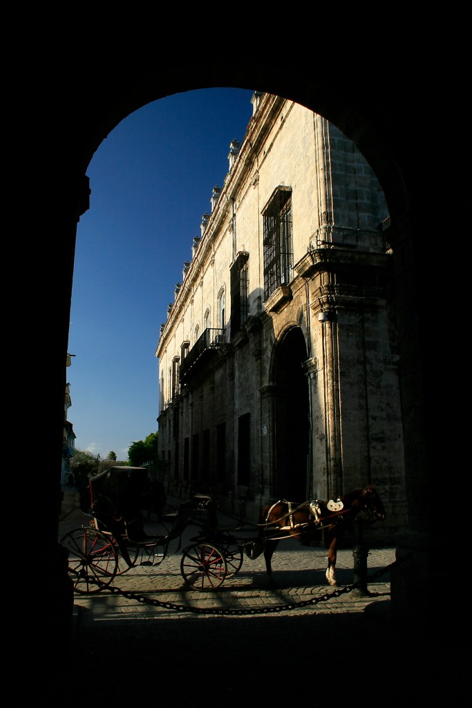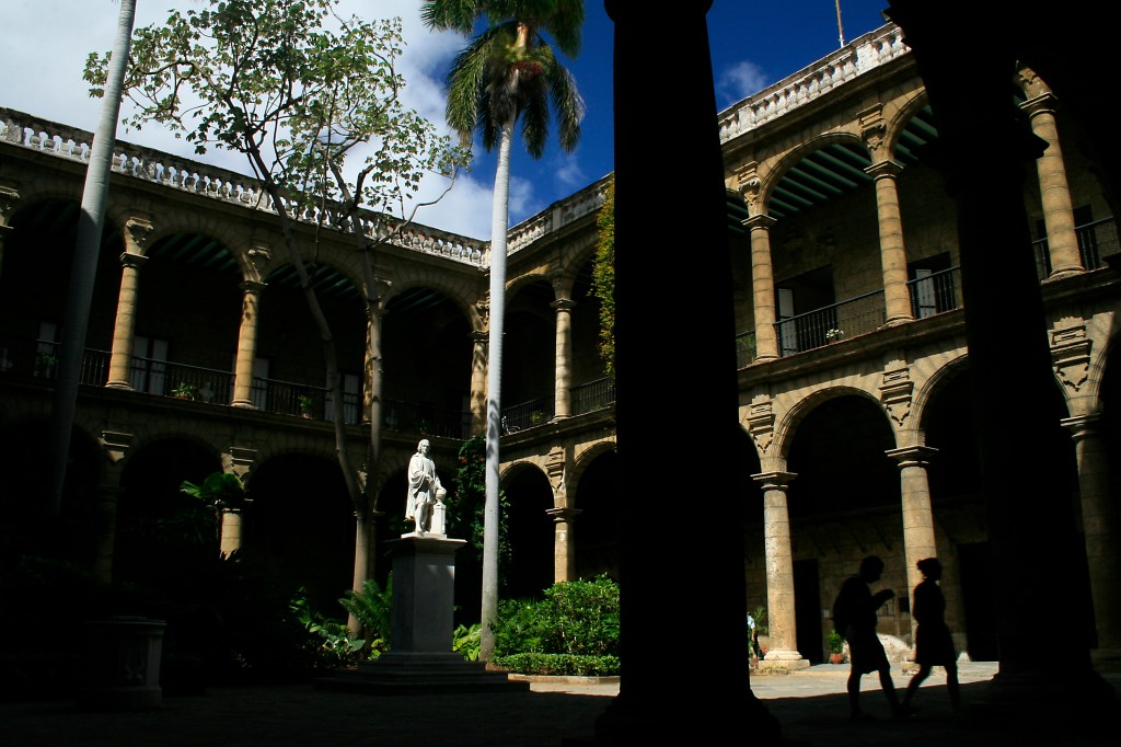 7th March 2009: Tourists leave the courtyard of the Palacio de los Capitanes Generales in the Plaza de Armas, Habana, Cuba. Picture by David Pillinger.