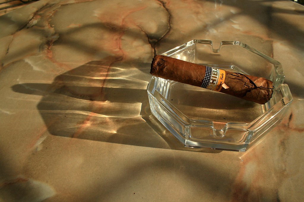 3rd March 2009: A half smoked Cohiba cigar on a hotel balcony in Vinales, Pinar del Rio province, Cuba. Picture by David Pillinger.