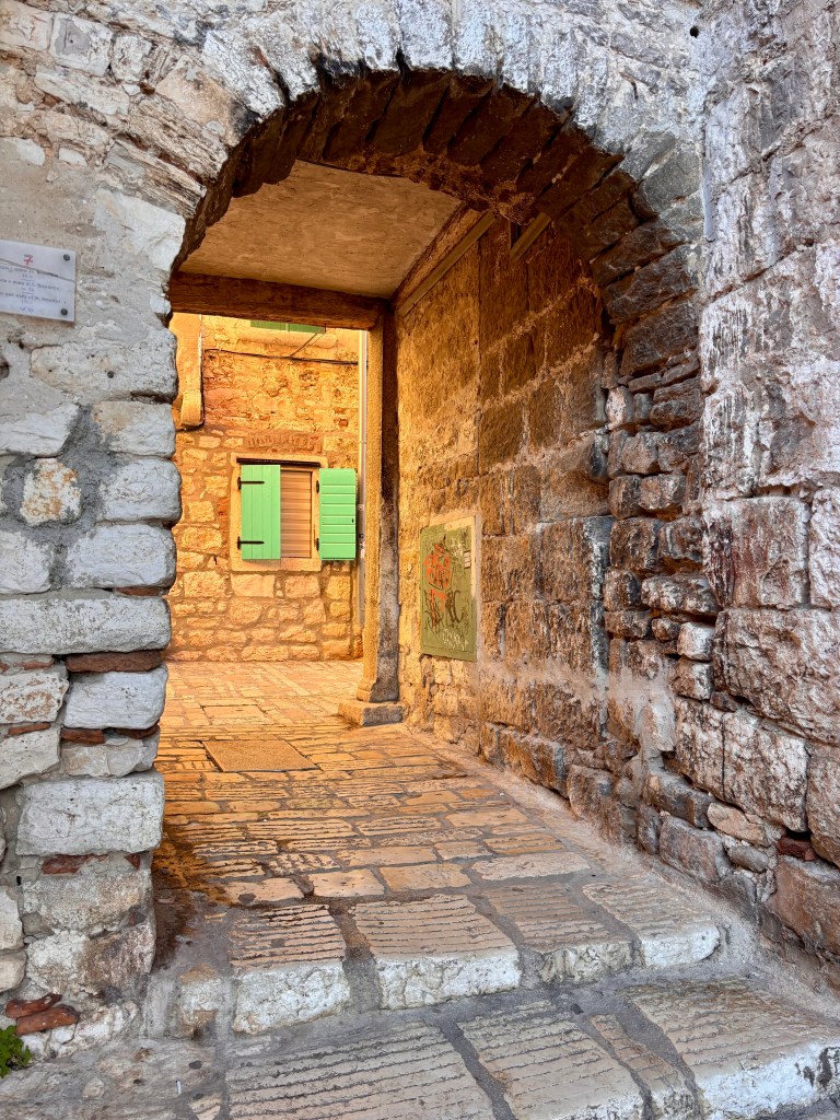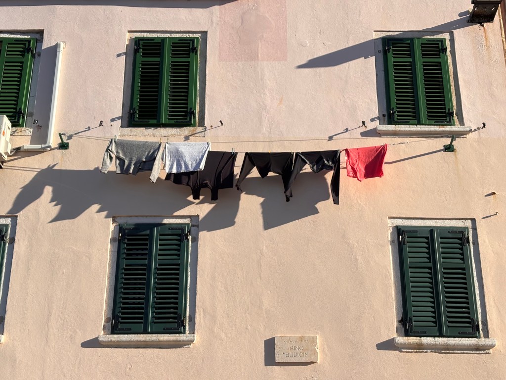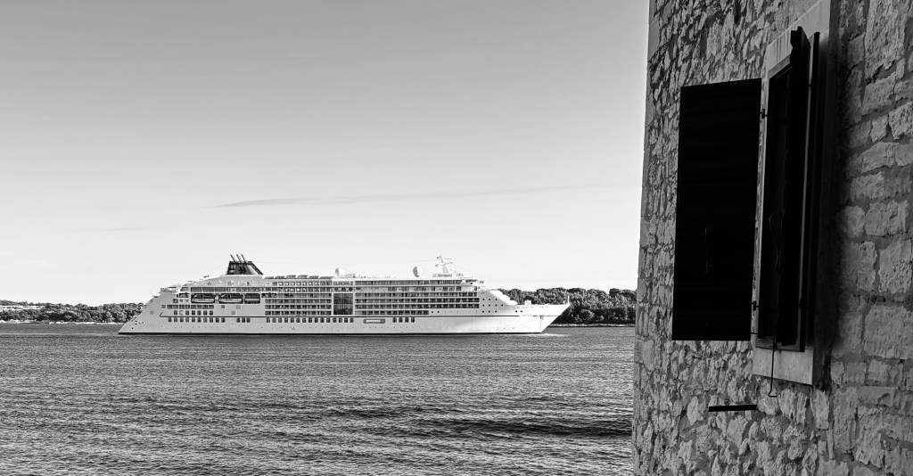Cruise ship and shutters, Rovinj, Croatia